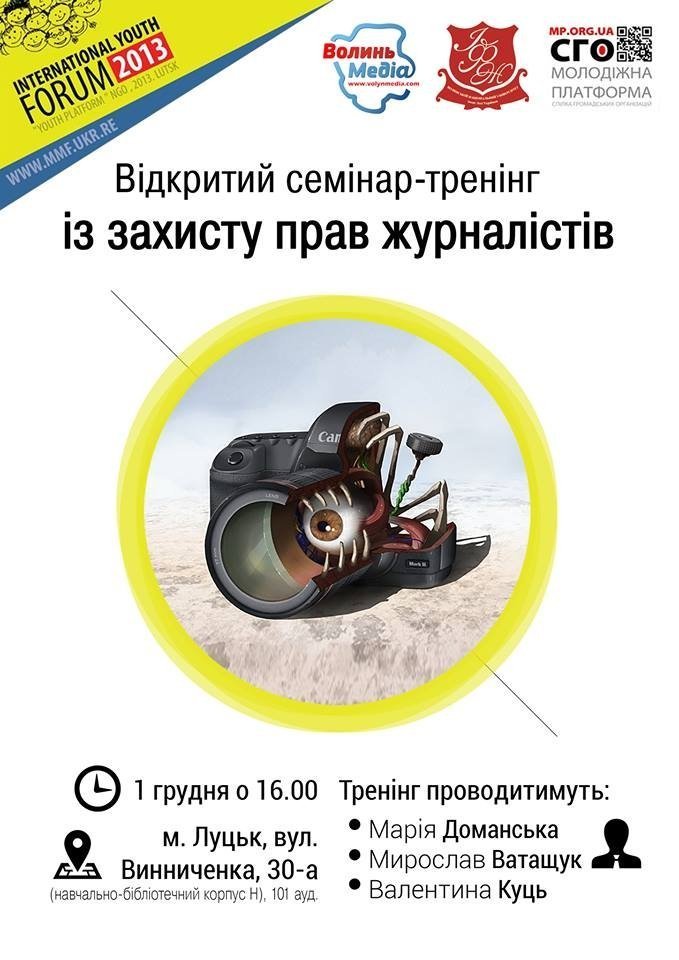 У Луцьку відбудеться відкритий семінар-тренінг із захисту прав журналістів.