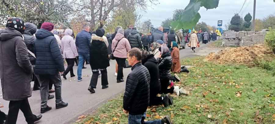 «Пекучий біль від непоправної втрати сльозами окропив обличчя людей, які на колінах зустрічали й проводжали свого земляка», - йдеться у повідомленні.