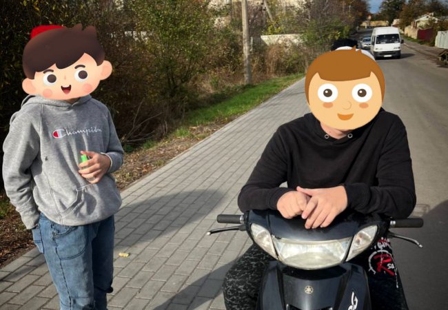 Днями патрульні поверталися у Луцьк зі службового завдання. У селі Великий Омеляник на вулиці Володимирській вони помітили скутер марки Yamaha, керманичем якого була дитина, а поруч сидів ще один маленький пасажир. Обидва хлопчики не мали шоломів.
