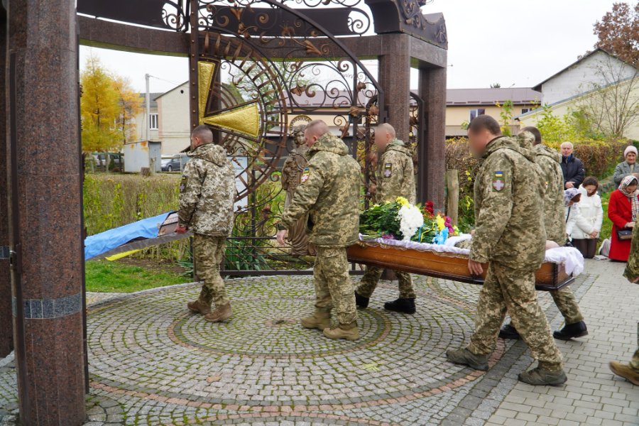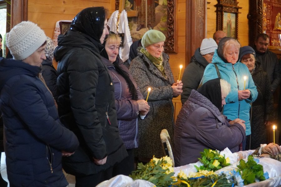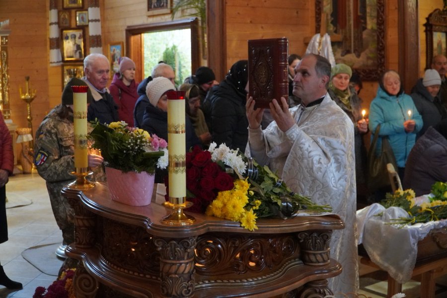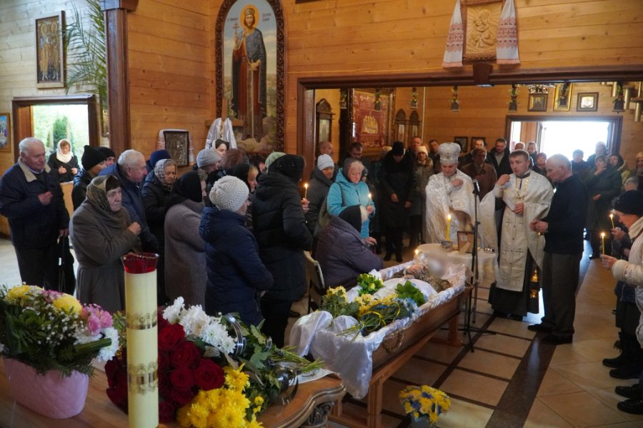 Траурний кортеж мешканці зустрічали навколішки зі слізьми на очах. Попрощатись та віддати останню шану Герою до храму Віри, Надії, Любові та матері їх Софії прийшли його рідні, друзі, побратими, представники місцевої влади та небайдужі жителі.