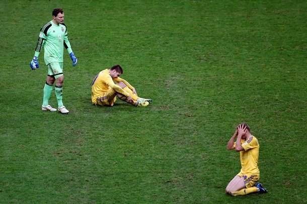 Як футболісти збірної України відреагували на фінальний свисток у розгромному для них матчі зафіксували фотокореспонденти.