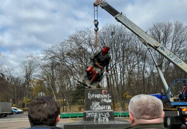 У Києві на Берестейському проспекті демонтували пам'ятник російському поетові Олександру Пушкіну.
