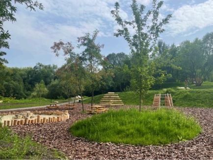 «Цей проєкт так само був виконаний в дуже короткі терміни і обмеженими ресурсами. У Львові є величезний лісовий масив «Знесіння» фактично в центрі міста. Неподалік розташований прихисток — тимчасове житло для жінок при надії, це частина комплексу Unbroken. Але поруч — лише максимально природні зони без інфраструктури, тому тут не було особливо місця, де прогулятися.