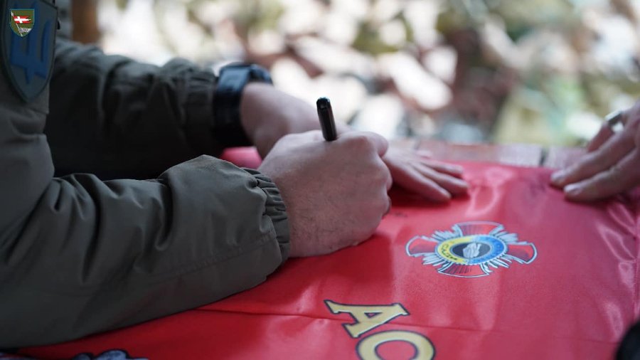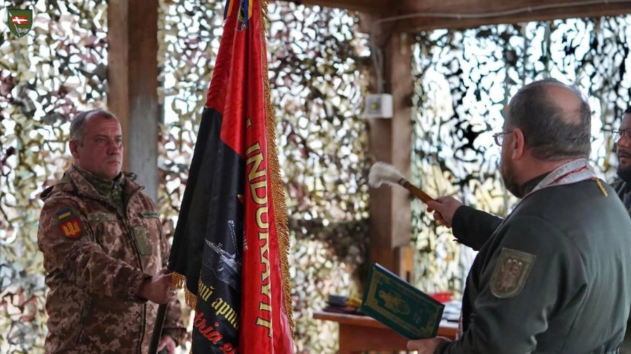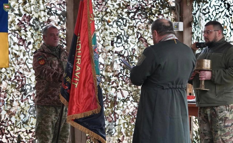 "Капелан бригади отець Ігор Бігун освятив знамено, яке віднині супроводжуватиме наших мужніх Князівських драконів-богів війни у їхній переможній боротьбі", - написали у підрозділі.