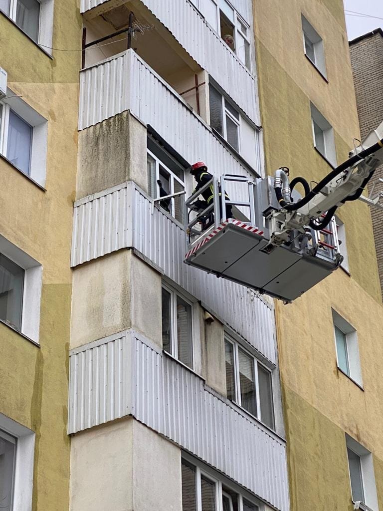 Рятувальники за допомогою колінчастого підіймача через балкон потрапили в помешкання, відчинили двері зсередини й надали доступ батькам до дитини.