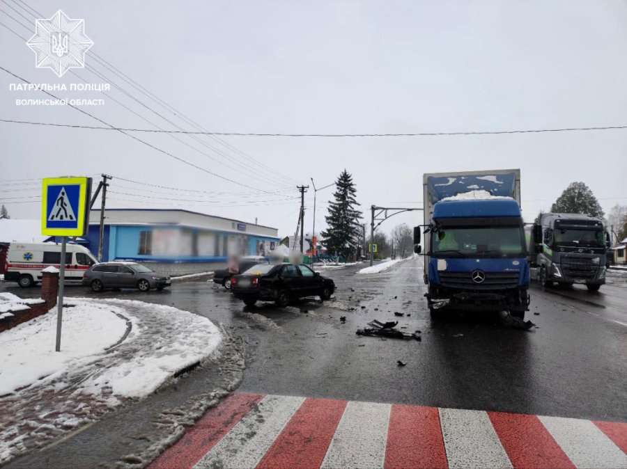 Подвійна аварія: на Волині легковик зіткнувся з вантажівкою та іншою автівкою. ФОТО