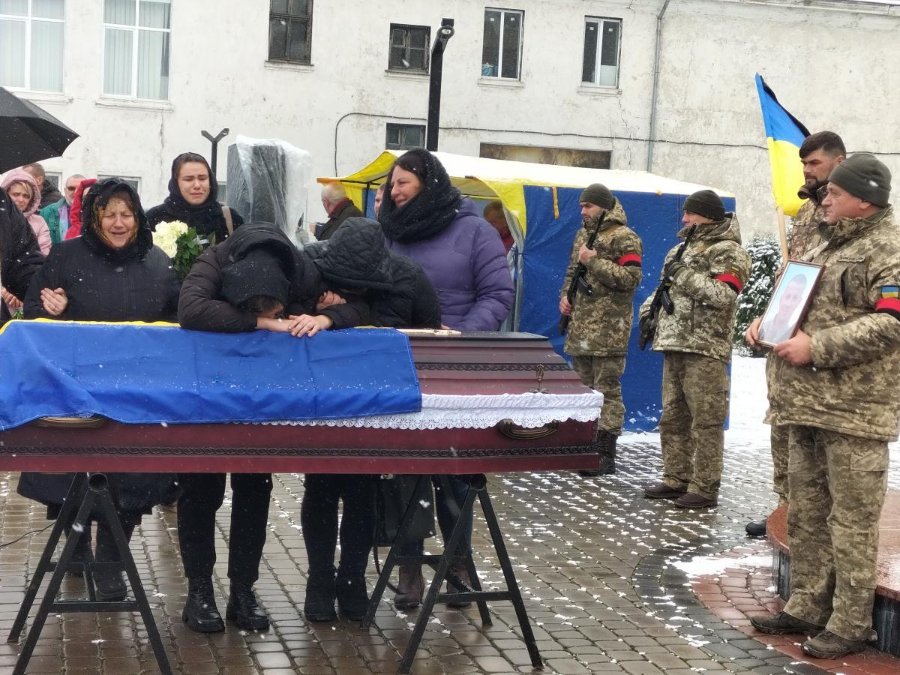 І знову сльози, біль, розпач… Снігову заметіль розривають гучні постріли та звуки Державного Гімну. Військові знімають жовто-синій стяг, яким була покрита домовина, і як символ держави, якій вірно й до останнього подиху служив солдат Юрій Чонка, передають братові Героя.