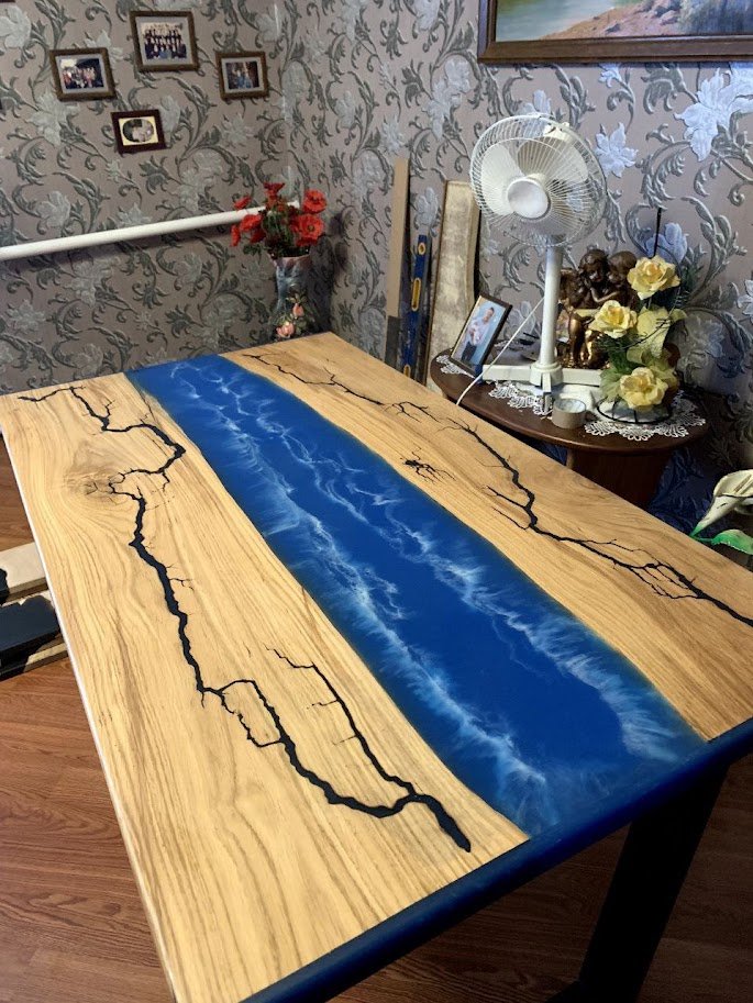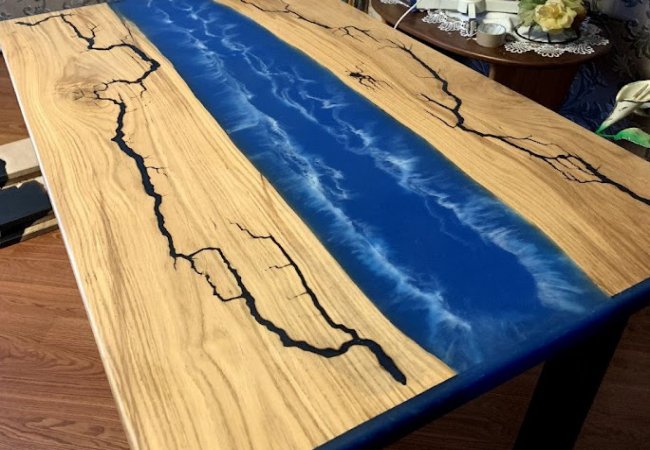 У камінь-каширця Павла Зрума чудово виходить поєднувати дерево, інші природні матеріали з епоксидними смолами і створювати унікальні предмети інтер’єру.