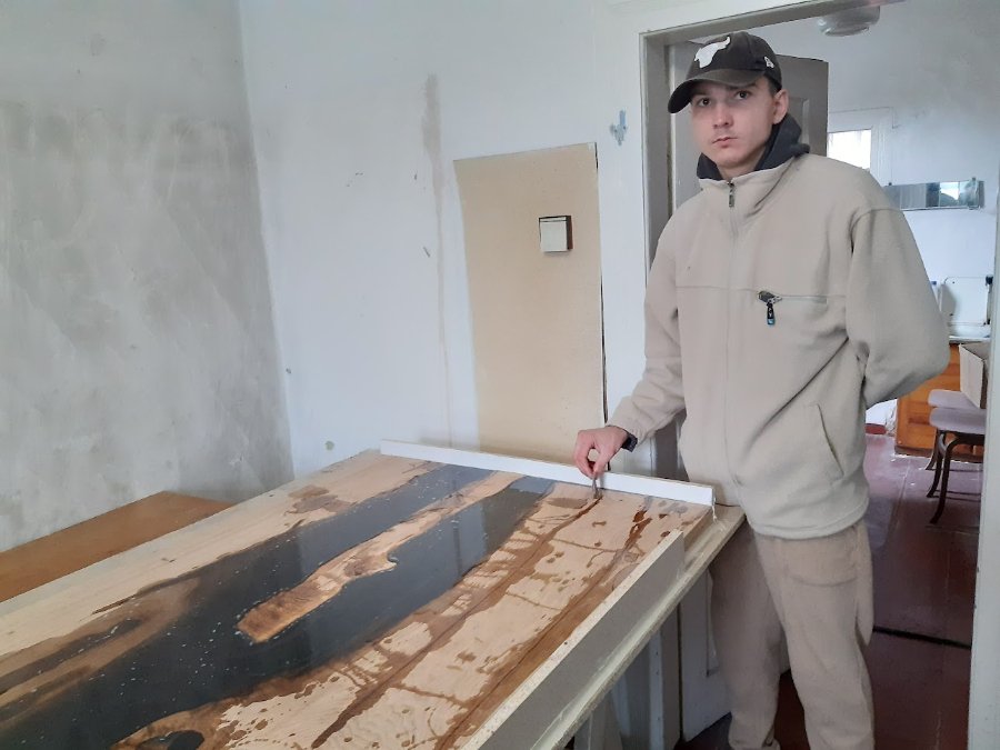 Для двадцятишестирічного Павла працювати із деревом – звична і водночас захоплива справа. Столярує з дитинства, переймаючи досвід батька. У п’ятнадцять вже практикувався, виконуючи серйозні замовлення. Тоді часто допомагав тату, як підмайстер, їздив із ним на сезонні роботи до інших країн. Закордоном, вони разом зводили та оформлювали в дереві різноманітні об’єкти. Що також було для чоловіка хорошою наукою. А не так давно він спробував себе в литті епоксидною смолою. Здобуті раніше знання тут стали як ніяк доречними. Та все ж Павло і сьогодні продовжує далі вчитися, щодня вдосконалювати професійні навички, відкривати “душу” обраного напрямку.