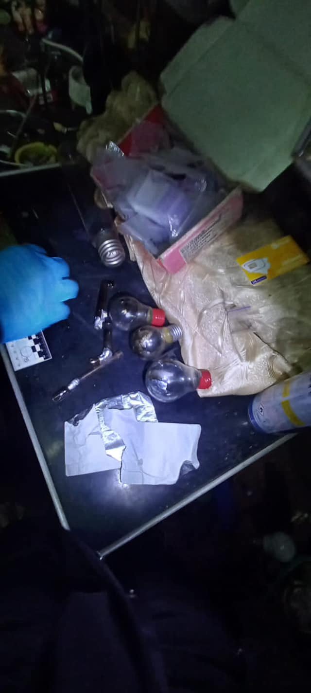 Виявлено й вилучено психотропну речовину альфа «PVP», лампи та трубки з нашаруваннями, мобільний телефон, банківські картки та інші речові докази, що свідчать про причетність до незаконної діяльності.