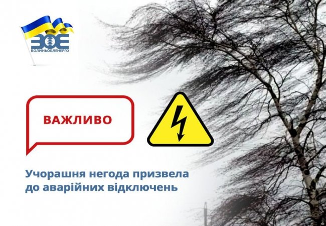 Сильні пориви вітру вчора, 23 листопада, призвели до аварійних відключень на Волині.