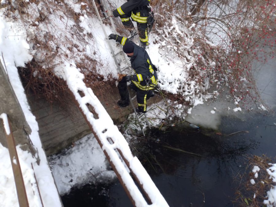 Залишити чотирилапого в біді було неприпустимо, отож відділення служби 101 виїхало на місце і за допомогою драбини рятувальники дістали собаку з канави.