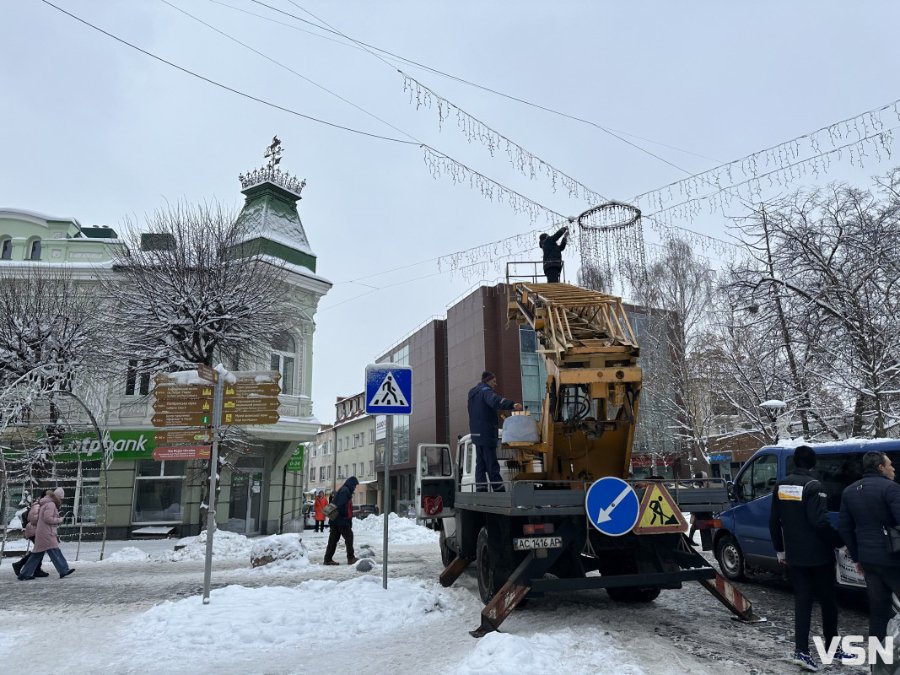 У центрі Луцька монтують святкову ілюмінацію, про це інформує ВСН.