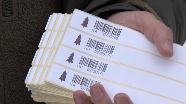 Кожне зрубане новорічне дерево має ідентифікаційну стрічку.