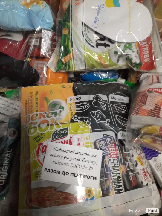 Школярі луцької гімназії №20 зібрали для військовослужбовців понад 500 пакуночків зі смаколиками.