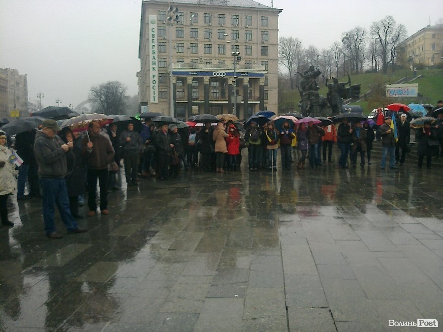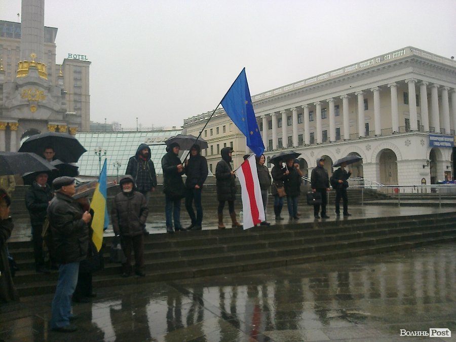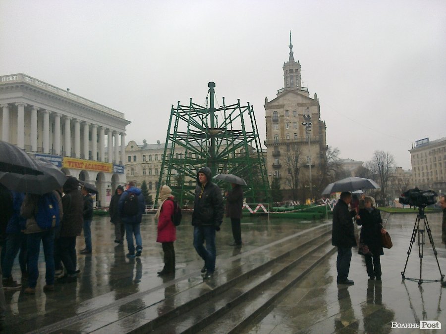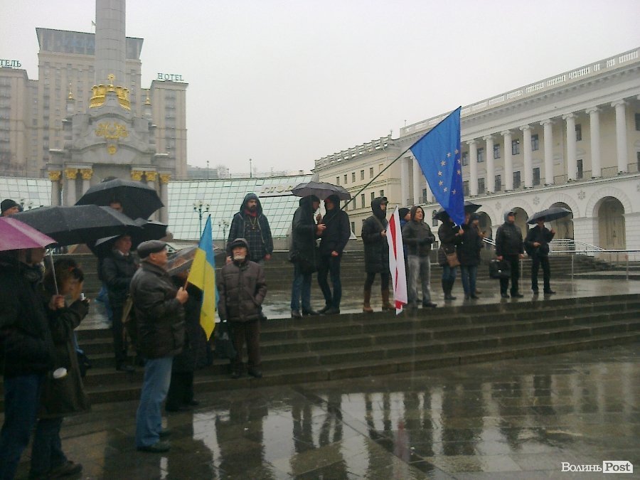 Не зважаючи на дощ, який зараз йде в Києві, на Майдані Незалежності залишається близько сотні активістів, які вимагають підписання Угоди про Асоціацію з ЄС.