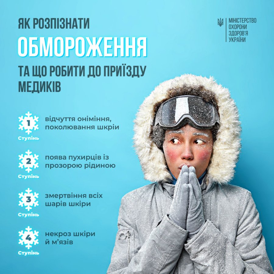 У МОЗ зазначають, що переохолодження може бути локальним (обмороження) або загальним (замерзання).