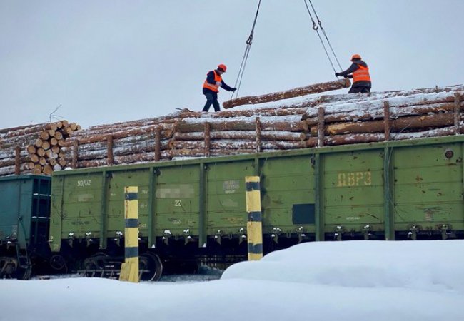 Перед відправкою на складі лісгоспу робітники завантажили 180 кубометрів деревини на вагони. Роботи тривали декілька днів.