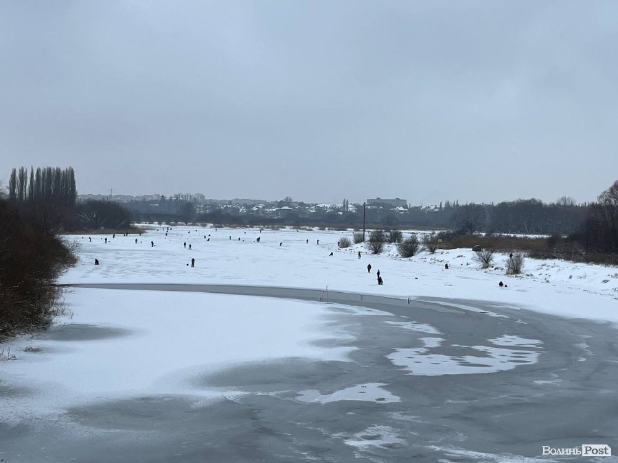 У Луцьку замерзлу заплаву річки Стир заполонили рибалки
