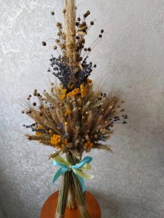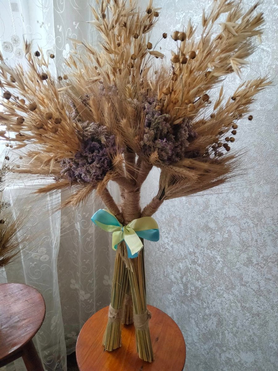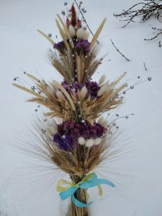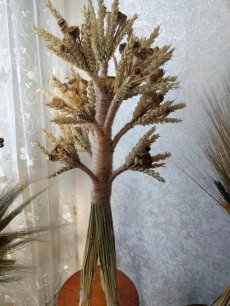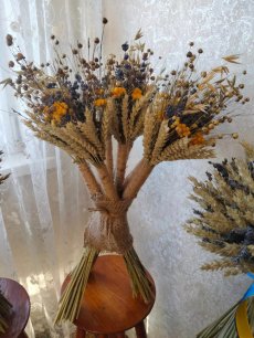 «Весна, літо, осінь я займаюся квітами, а вже потім сідаю за дідухи. Спочатку я захопилася сухоцвітами, а потім зрозуміла, що їх можна використовувати у дідухах. Все ж йде з дитинства. Пам’ятаю, як мій дідусь перед Різдвом ставив в кутку кімнати під іконами дідуха – простенького снопа з колосків, під яким настелена солома. Мені це дуже подобалося. У баби з дідом була старенька хата і коли усі їли кутю, то дід брав ложку куті та підкидав її до стелі. Дивився, скільки зерен прикріпилося до стелі – якщо багато, то рік буде врожайним і голоду не буде», - пригадує майстриня.