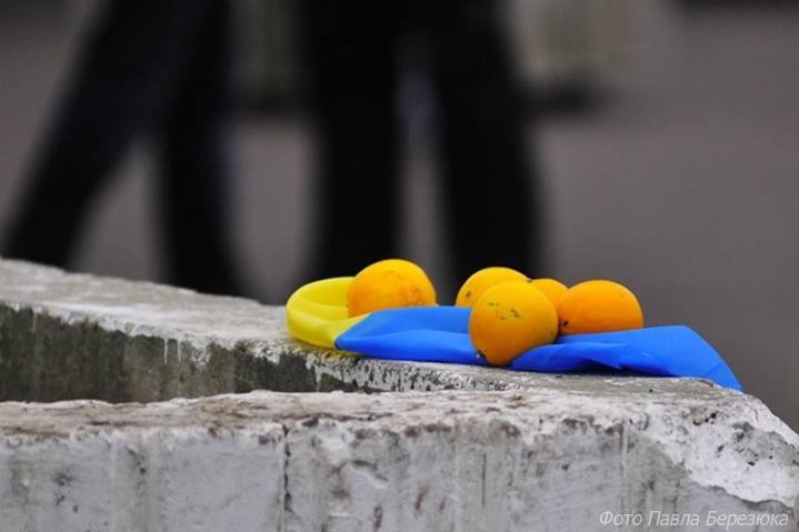 Станом на 20:00 на Театральній площі міста згуртувалися приблизно 70 людей, які вимагають скасування згортання євроінтеграції України.