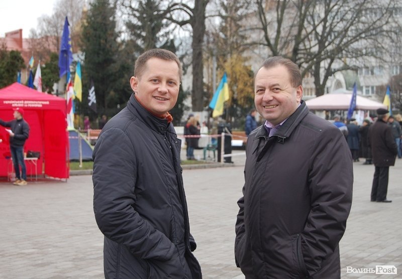 Присутні на площі і кілька політиків. Зокрема, депутат міської ради Богдан Шиба, Андрій Козюра, колишній губернатор Володимир Бондар.