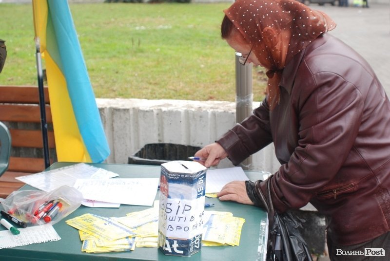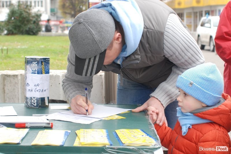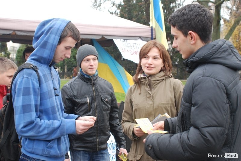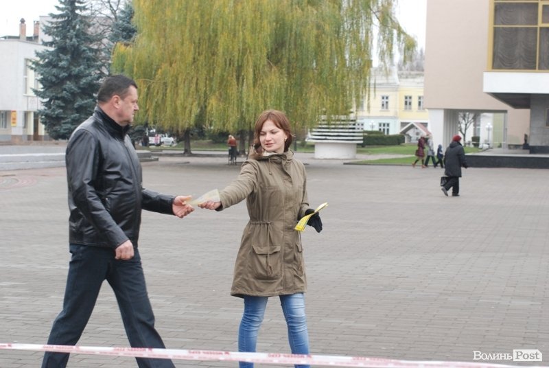 23 листопада на майдані в Луцьку не людно. Тут працюють активісти, роздають листівки з закликами прийти на площу 24 листопада. Зазначимо, що у неділю запланований масштабний мітинг за участі ВО «Свобода», «Батьківщина» та партії «УДАР».