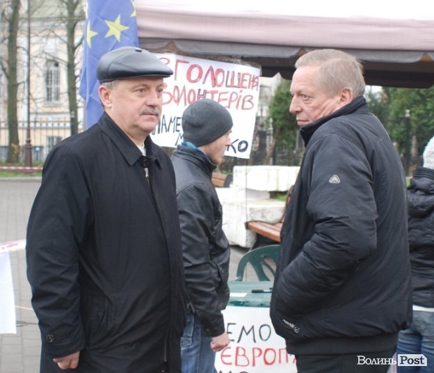 14:00 На Євромайдан частенько заходять депутати Луцької міської та Волинської обласної рад. Нагадаємо, що міський голова Микола Романюк підписав розпорядження про скликання сесії міської ради щодо європитання.