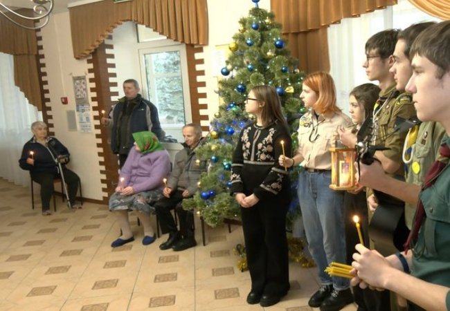 Четвертий рік поспіль члени пластунської організації приносять Вифлеємський вогонь мешканцям геріатричного пансіонату, каже пластун Олесь Воробйов. Каже, що цього року вогонь передали австрійські скаути.