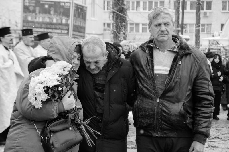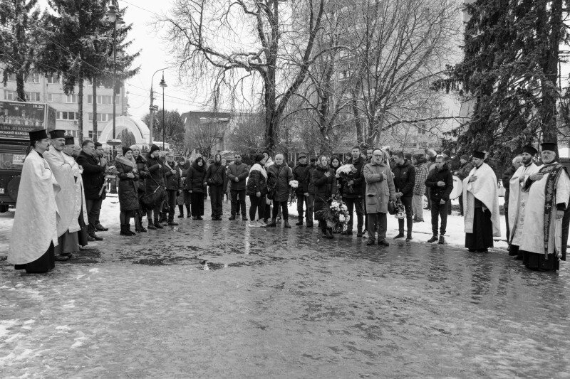 Після завершення панахиди домовину з тілом Героя прощальною ходою пронесли Театральним майданом. Біля фотостенду “Герої Небесної Сотні – Загинули за єдність України” скорботна процесія зупинилася і виконала Державний Гімн.