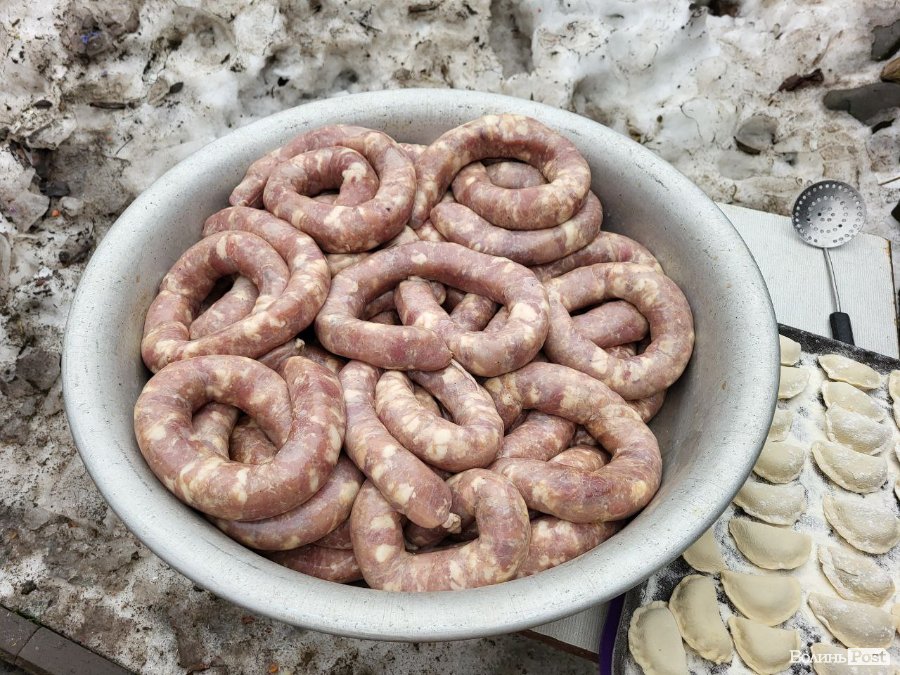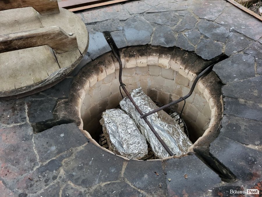 Господар обійстя Володимир Грушка терпляче порається біля тандира – готує для військових печеню. Домашня ковбаска, бочок, ребра поїдуть до хлопців на Харківщину та Донеччину.