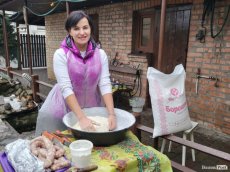 Жіночки та діти під українські пісні по радіо вміло ліплять на передову вареники з картоплею з грибами, капустою та сиром. А у дворі господар Володимир Грушка дістає із тандиру печене м’ясо та реберця.