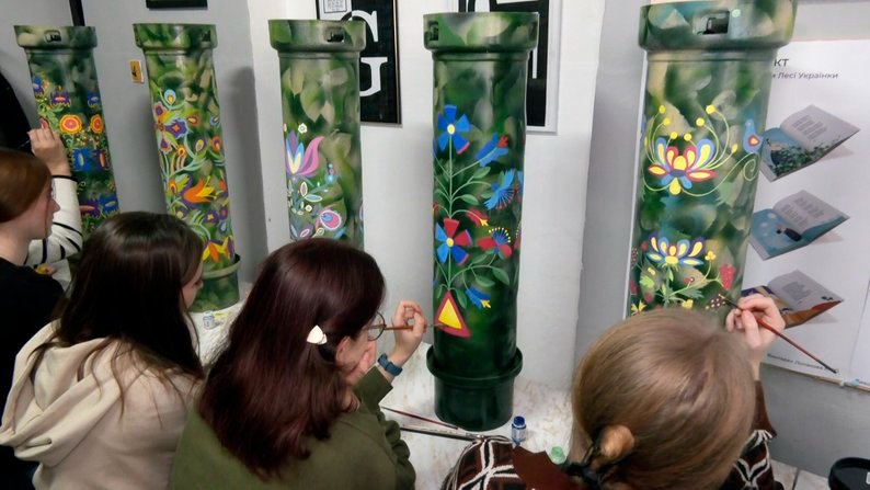 Перед стартом роботи студенти разом із викладачами розробили фітоморфні мотиви і композиції, які використовуватимуться під час розфарбовування тубусів, розповіла викладачка Софія Пасюк.