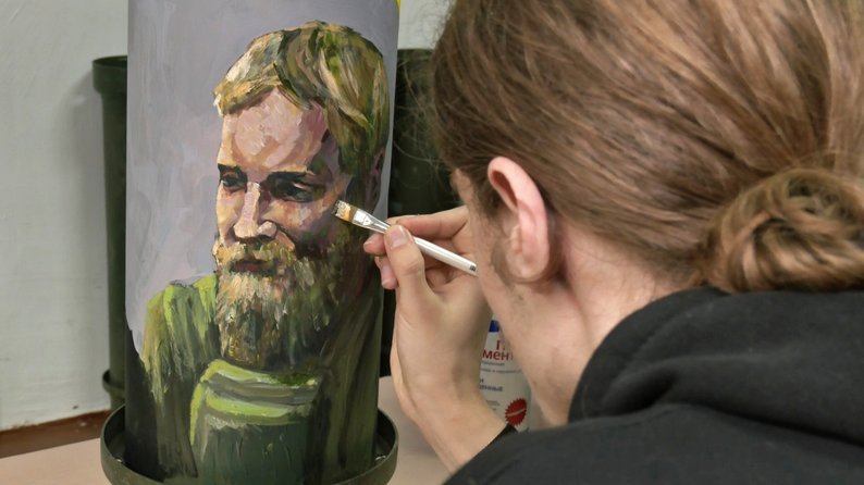 Як розповіла викладачка освітнього закладу Юлія Лопанова, малюють на гільзах, тубусах та інших речах, що привезли волонтери із зони бойових дій.