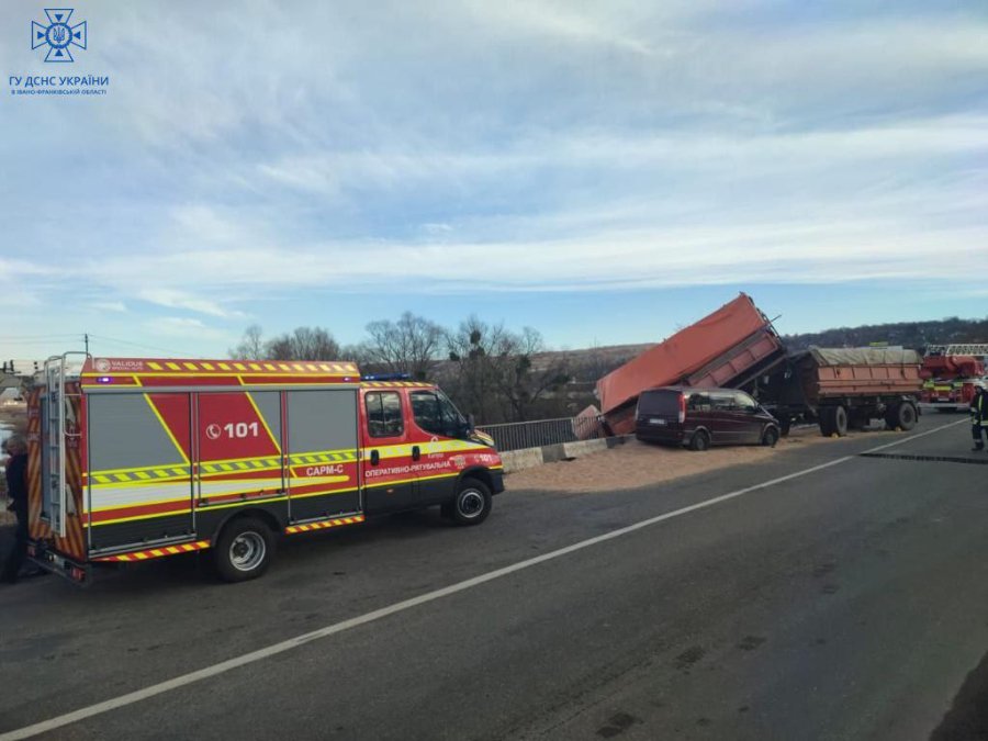 Врятували жінку з вантажівки, що повисла з мосту над прірвою на Прикарпатті
