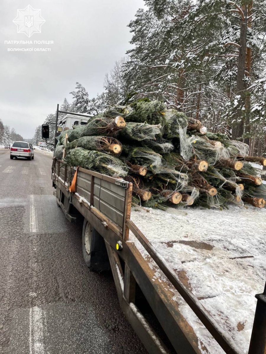 Патрульні Ковеля виявили вантажівку з рідкісним вантажем — 80 новорічних ялинок. Коли ж інспектори зупинили керманича для перевірки, то зʼясували, що жодних документів на дерева він не має.