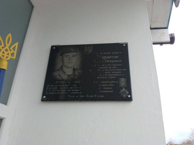 На фасаді Перемильського ліцею в Берестечківській громаді встановили меморіальну дошку загиблому на війні випускнику Романові Журавлю.