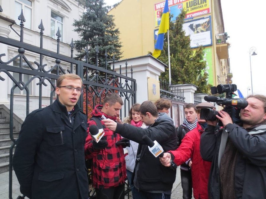 Після виступів активістів протесту під Консульством до мітингувальників все ж вийшов Генеральний консул України в Любліні. У своїй промові він сказав, що підписання Угоди про асоціацію не обов'язково принесе користь, але зазначив, що Україна має триматися європейського курсу.