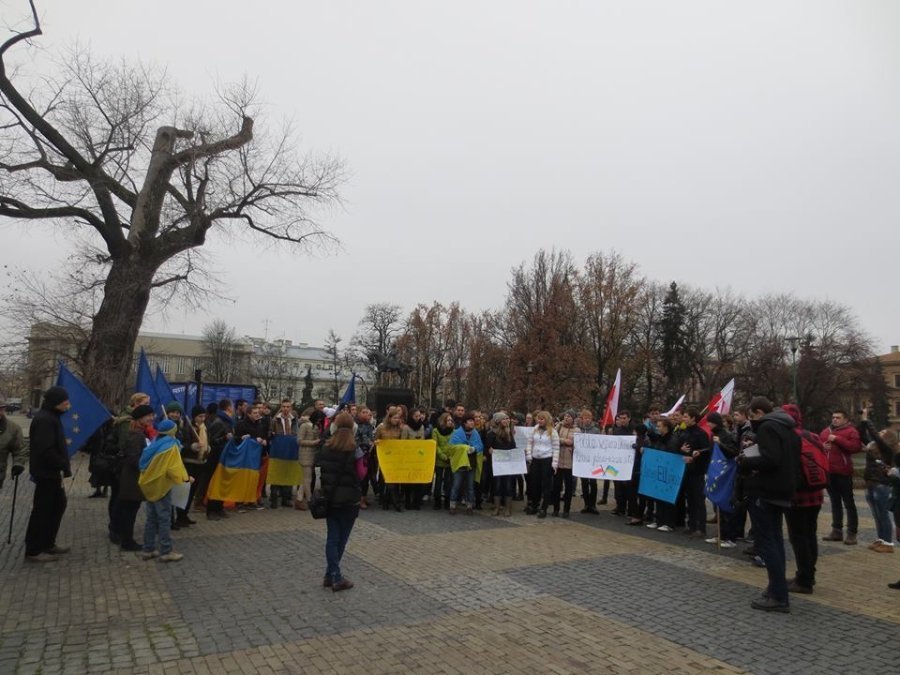 24 листопада на Литовській площі зібралося більше 200 людей, звідки ми колоною вирушили під Генеральне консульство України, скандуючи "Україна - це Європа", "Янукович підпиши Угоду", - пишуть організатори заходу в Facebook.