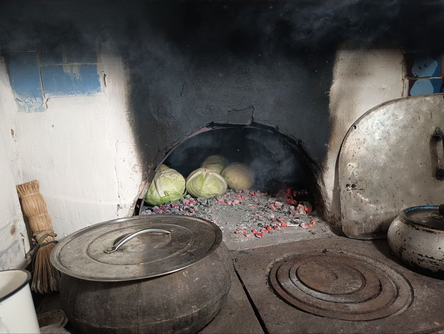 Коли вогонь у печі вигорів, качани капусти цілими закладають у жар, без посуду та жодних спецій. Після цього, каже Людмила Козачук, страву благословляють молитвою.
