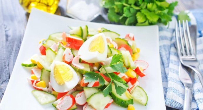 1. Огірки та крабові палочки нарізати кубиками чи соломкою (як вам вигідніше).