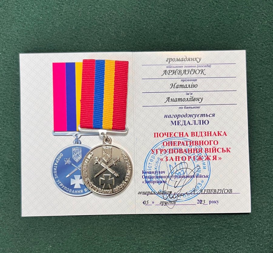 Відома на Волині волонтерка Наталія Ариванюк отримала медаль Почесна відзнака ОУВ «Запоріжжя».