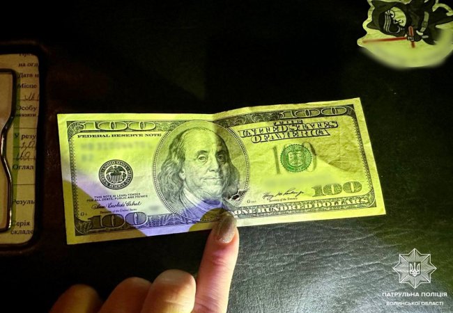 На Волині водій у стані сп’яніння пропонував патрульним неправомірну вигоду у сумі 100 американських доларів, аби уникнути відповідальності.