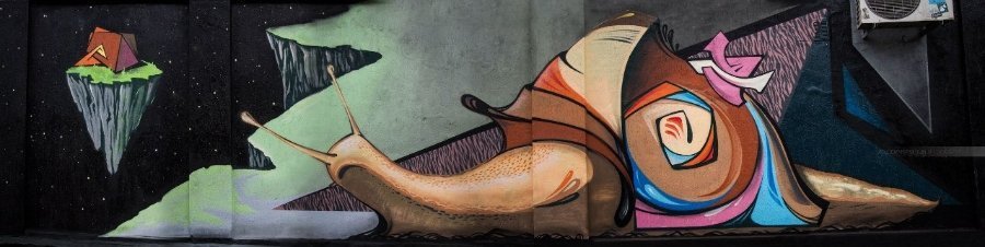 На новому творінні райтера зображено равлика, довжиною 5-6 метрів, який повзе або дивитися в бік уламку скелі, що висить.