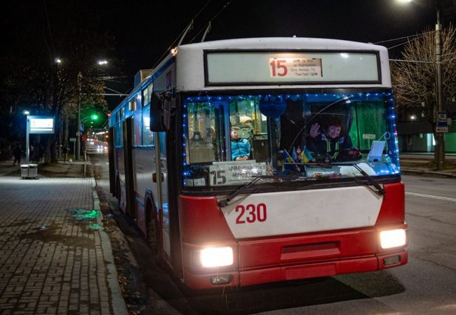У період різдвяно-новорічних свят Луцьком курсує прикрашений гірляндами тролейбус.