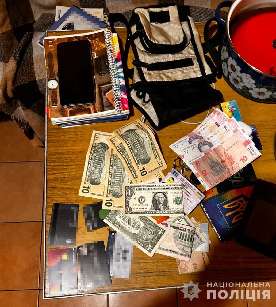 Поліцейські провели санкціоновані обшуки за місцем проживання фігуранта під час яких виявили та вилучили речові докази по справі: гроші в іноземній валюті, банківські картки, мобільні телефони, комп’ютерну техніку, документи та інше.