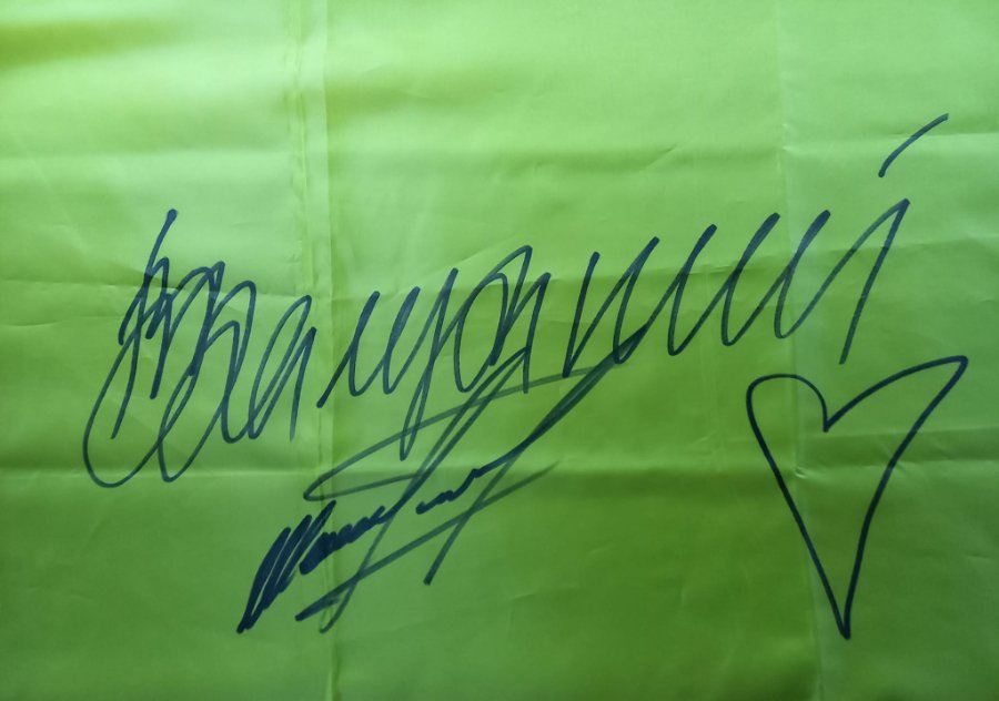 У музей передали державний прапор України з автографами Головнокомандувача ЗСУ Валерія Федоровича Залужного та начальника Генерального штабу ЗСУ Сергія Олександровича Шаптали.