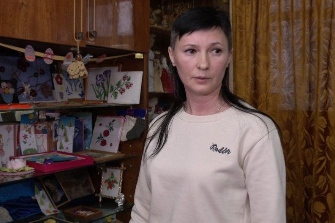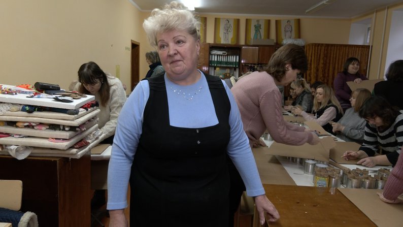 Прийшла допомогти педагогам мама двох учнів Аліна Жукова. Лучанка розповідає: її чоловік нині теж на сході. Зі слів жінки, окопні свічки передають для усіх військових, які звертаються за допомогою.