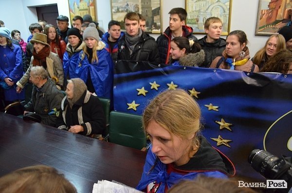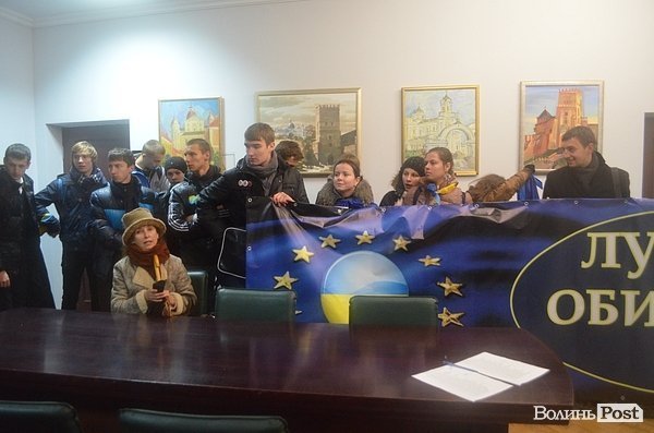 У Луцьку учасники Євромайдану зайняли приміщення міської ради – вони очікують результатів позачергової сесії.