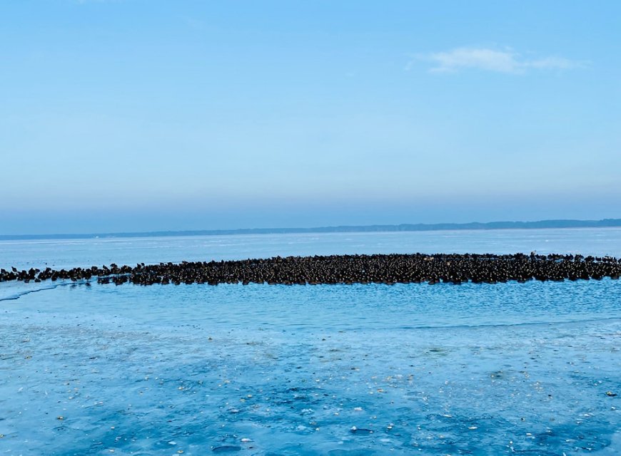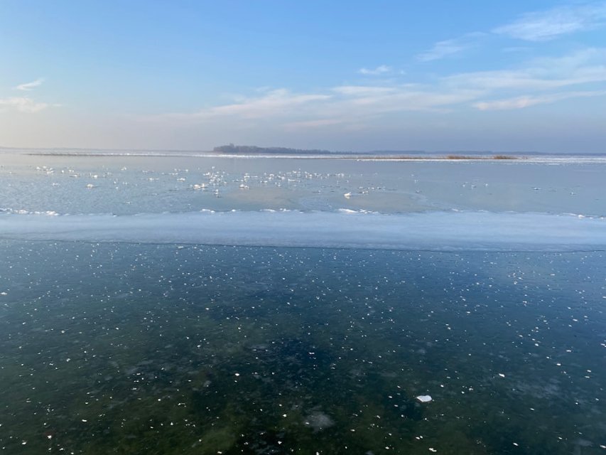 Посеред замерзлого озера Світязь працівники Шацького НПП помітили близько 1000 лисок.
